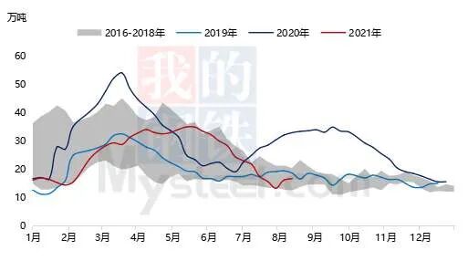 截止至8月16日,中国电解铜社会库存15.95万吨,库存处于历史同期相对低位,在淡季周期里,低库存为铜价提供了一定的底部支撑,铜价围绕于70000元/吨一线宽幅震荡。从目前供需环节来看,铜库存留有回升的空间,但库存的回升趋势相对缓和一些,对后续铜价上行有所限制。![]()