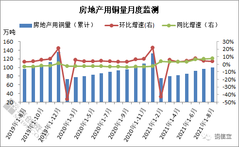 2021年1-8月份房地产用铜量监测