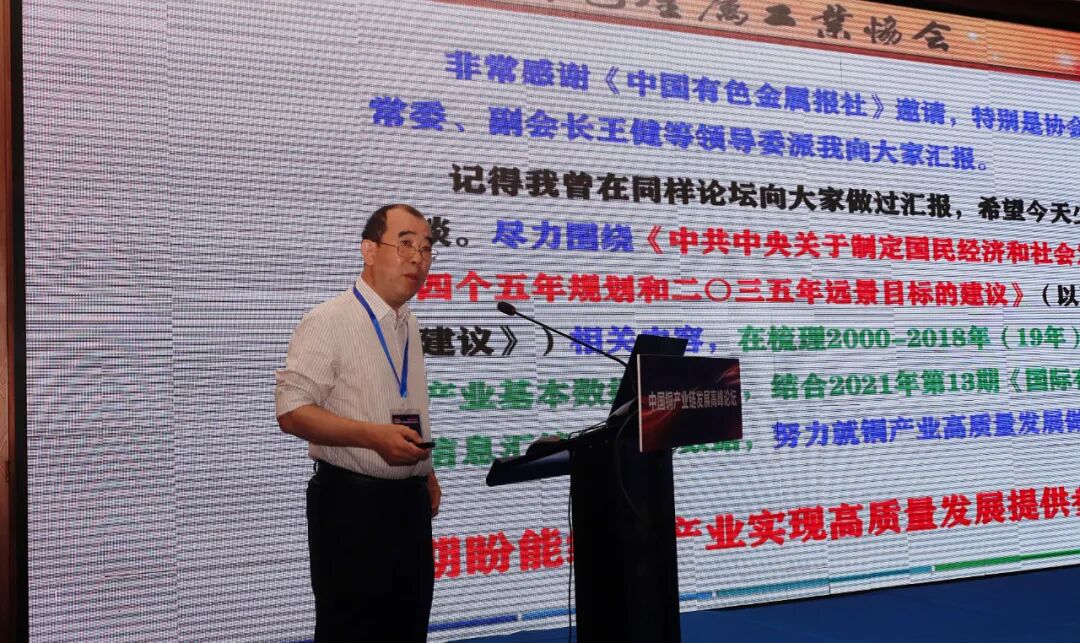 在论坛报告环节,胡长平作了题为《“十四五”铜产业高质量发展探讨》的报告,从高质量发展与“双循环”、新世纪来铜产业“双循环”概况、系统看待我国铜消费、我国铜产业高质量发展途径探讨等四个方面对铜产业发展进行了深入分析。