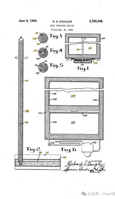 1944年,美国通用发动机公司的R.S.Gaugler在美国专利(No. 2350348)中提出了热管的工作原理,但他的想法当时并没有得到广泛的认可和采纳。