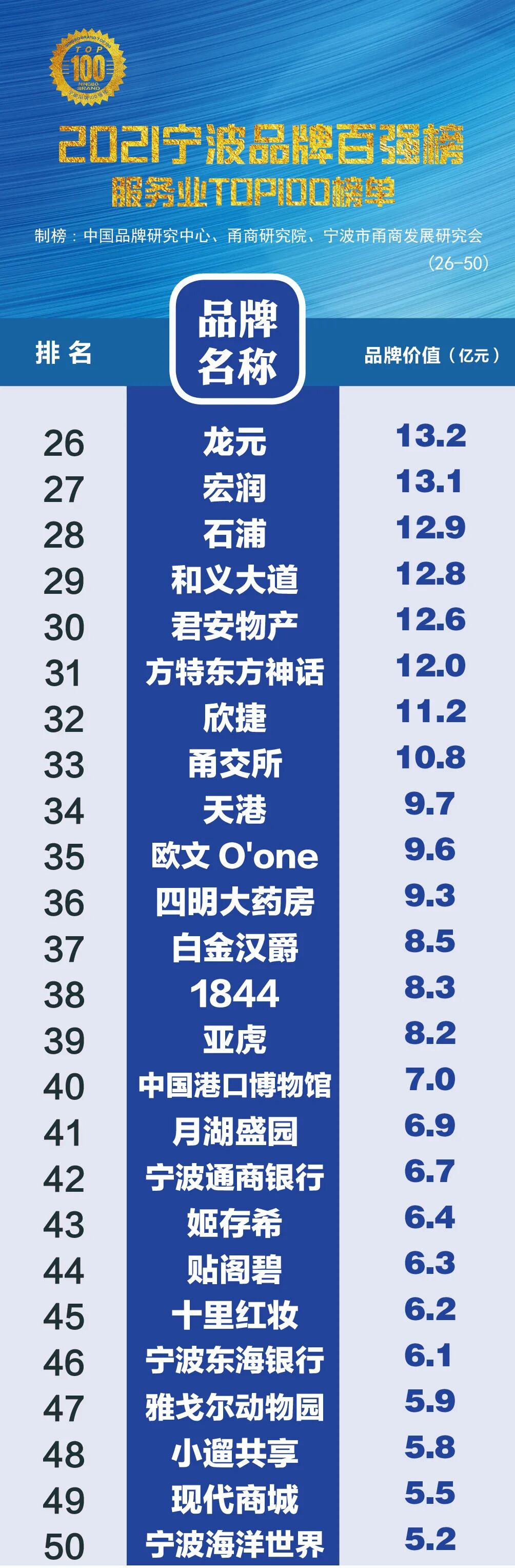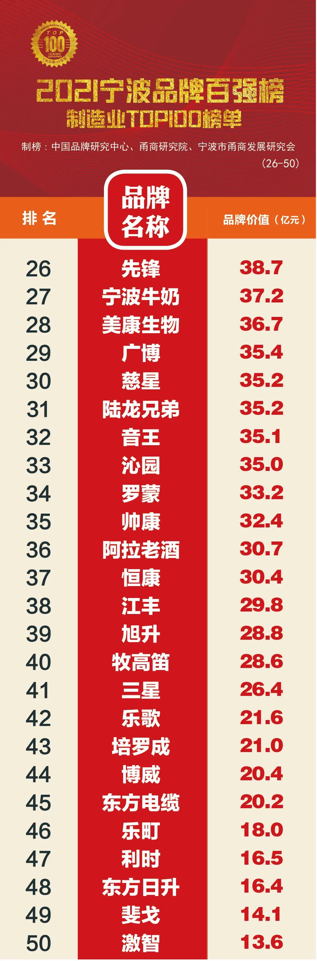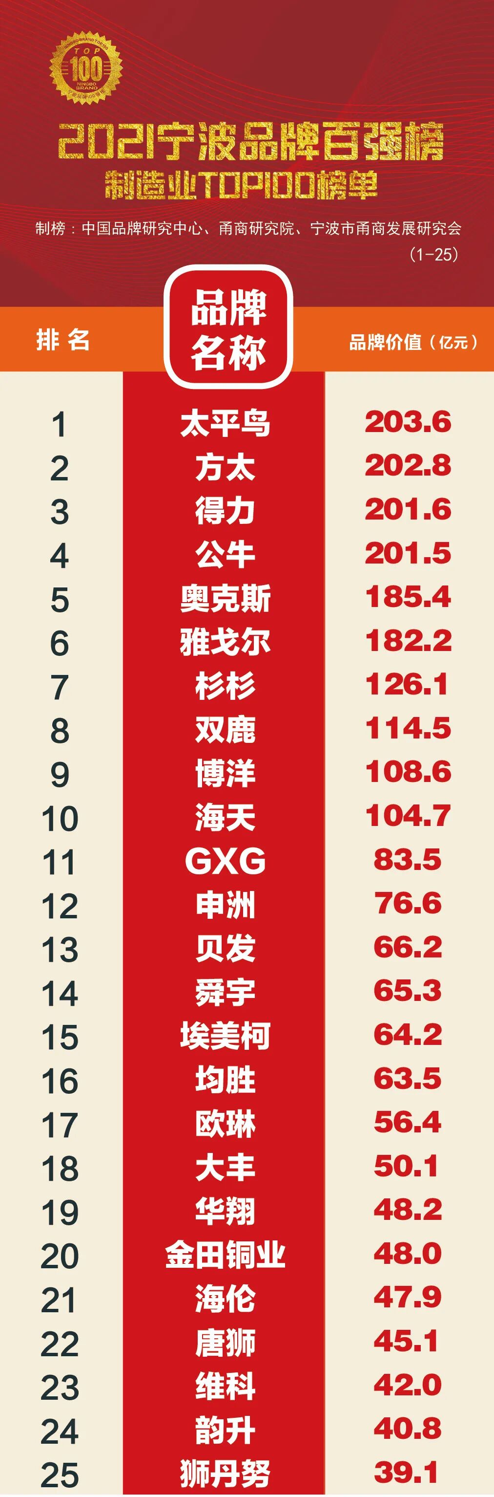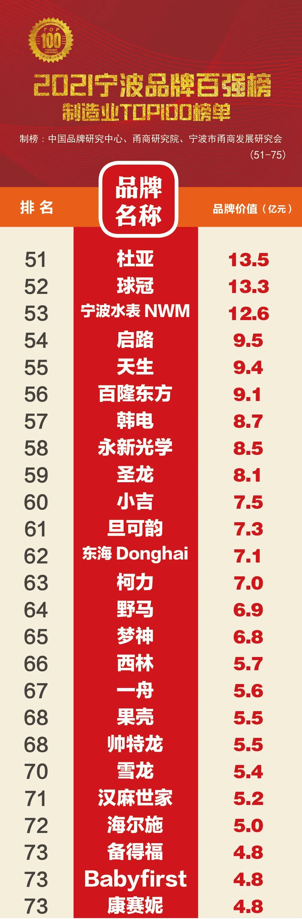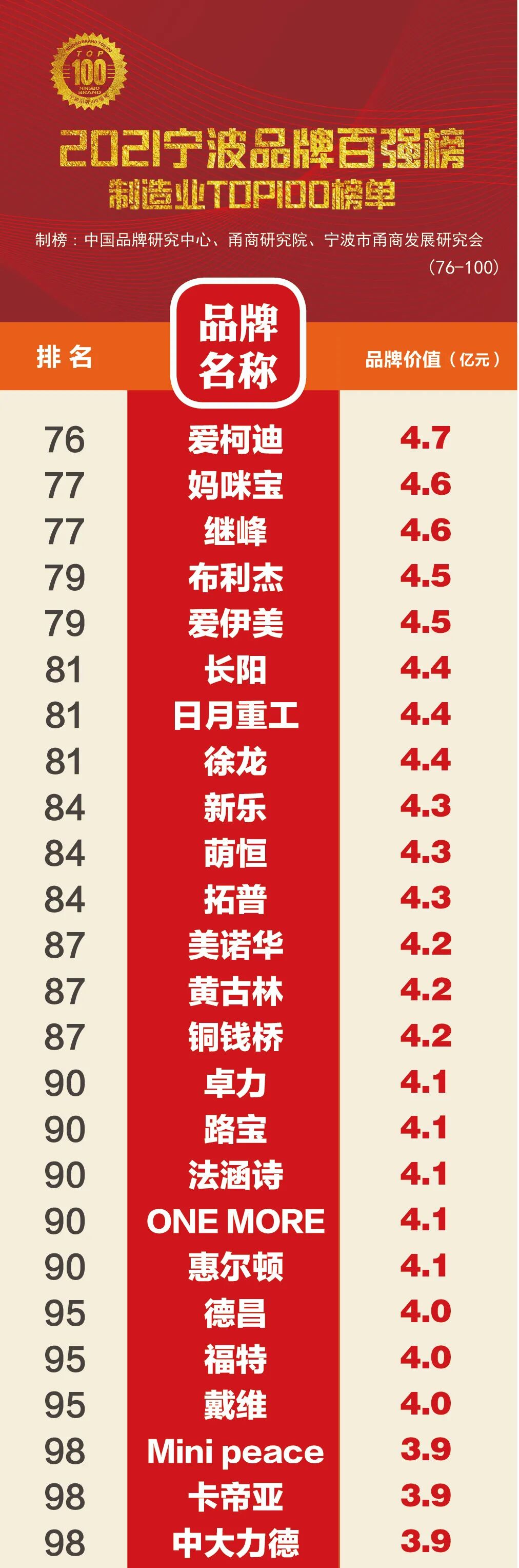 2021宁波品牌百强榜全榜单