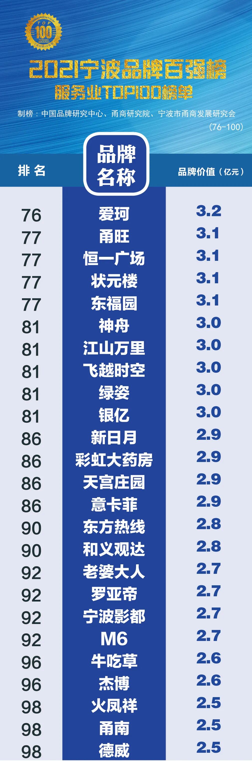 2021宁波品牌百强榜