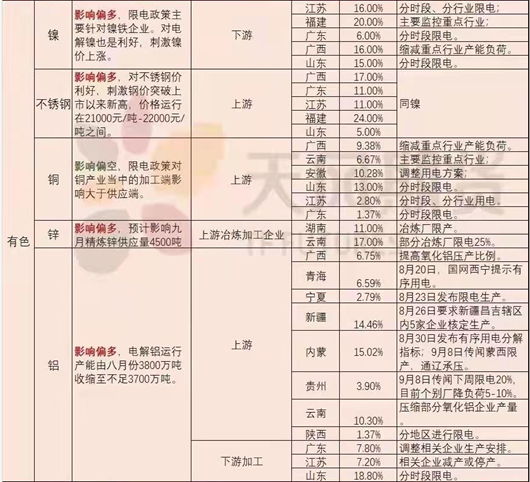 我们再来看国内限电。当然,国内限电应该说有一半因素是因为和特高压电网的计划有关的,但还有其他原因,尤其我们有色产业,更需要关注剩下另一半的其他原因。