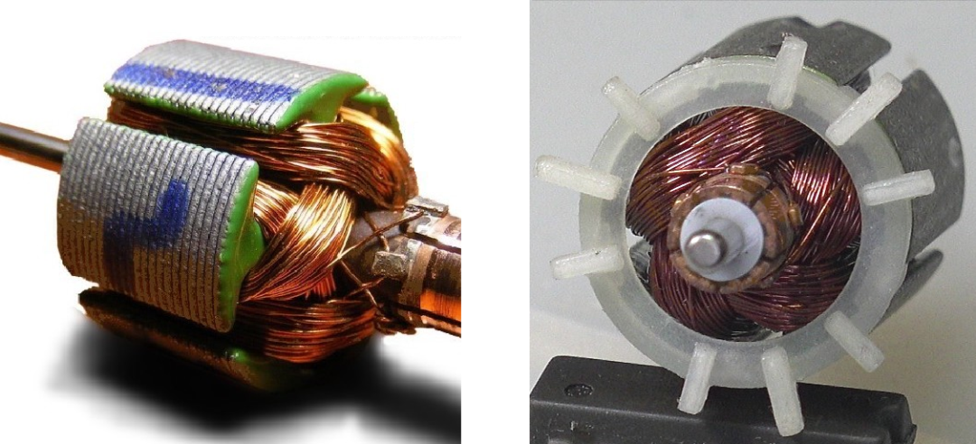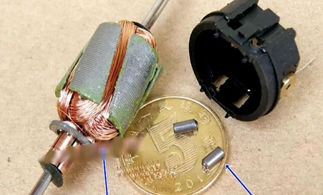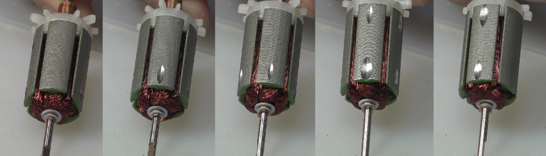 简介:五磁极直流有刷电机转子表面的凹槽是为了配平转子线圈绕组质量分布不均匀所带来转动转动,使得电机在工作时的震动减小。相比于五磁极转子,三磁极转子就没有这种情况,这是因为三磁极转子上的绕组分布是对称的。