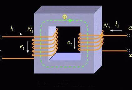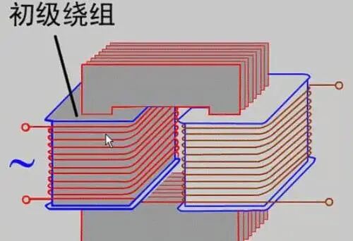 变压器有两组线圈。初级线圈和次级线圈。当初级线圈通上交流电时,变压器铁芯产生交变磁场,次级线圈就产生感应电动势。变压器的线圈的匝数比等于电压比。