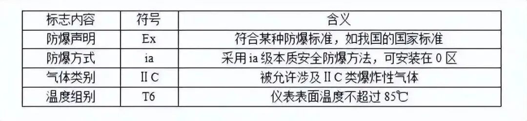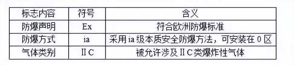 注 : 该标志中无温度组别项 , 说明该仪表不与爆炸性气体直接接触 。