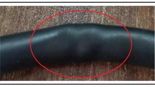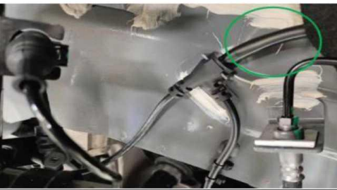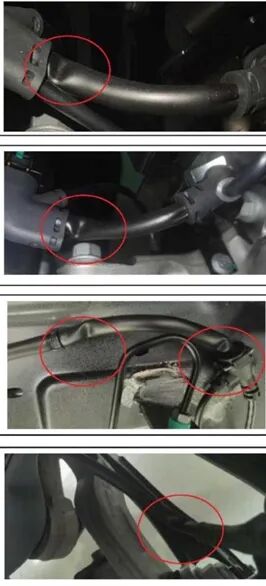 轮线束加工过程中保护管扭转或布线设计不合理,轮线束装配时扭转一定角度(45°以上)安装在汽车上,会导致保护管变形,产生折痕。