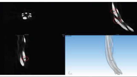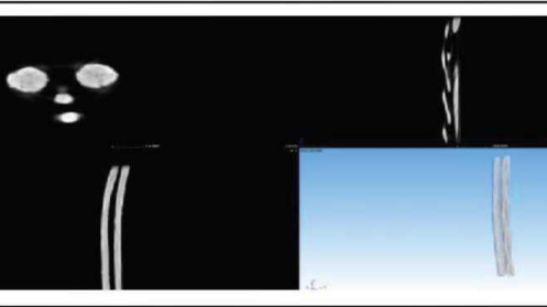 经过仔细评估和试验验证,需要更改线束布局,否则折痕问题无法解决,并且轮跳试验寿命测试也无法满足要求现有轮线束设计的运动包络,如图6所示,运动弯折角度过大,轮跳试验无法通过测试,试验后 X光扫描和轮线束拆解断丝情况,如图7所示。