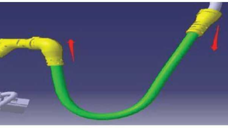 在车轮线束设计时,设计软件无法识别出不同的线束走向是否会产生折痕问题,保护管生产制造方也没有明确的设计弯曲半径建议。