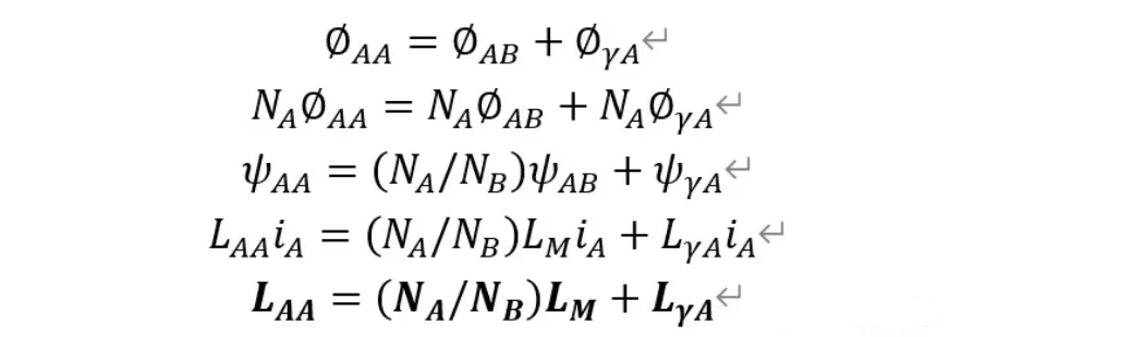 LAA为线圈A的自感;LM为线圈A、B之间的互感;LγA为线圈A的漏感。