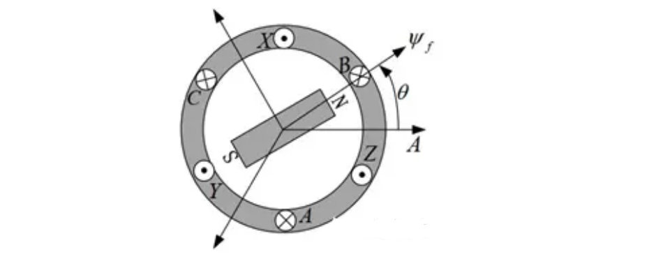 取永磁磁极励磁磁场的基波分量为ψf,其与A相轴线之间的夹角用θ表示,定子绕组Y形连接,转子以角速度ω逆时针旋转。